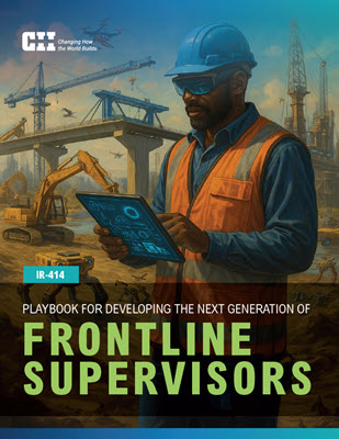 CII RT-414 has consolidated two tools into a single Implementation Resource—IR-414. The playbook explores how varying degrees of technological integration and workforce transformation can shape diverse construction jobsite environments, each with distinct skill requirements for Frontline Supervisors (FLS). It outlines three potential future scenarios, each highlighting unique skill sets and offering strategic insights for organizations aiming to cultivate next-generation FLS talent.